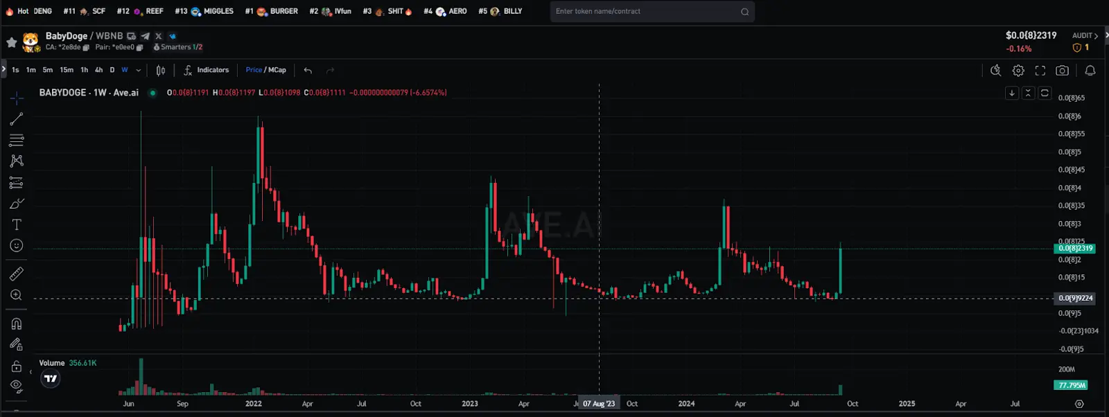 在 9 月 16 日,受「 Binance 将上线 BABYDOGE 现货」这一消息的推动, BABYDOGE 的价格瞬间上涨超过 40%。这一利好消息不仅增强了市场的关注度,还吸引了大量投资者的参与。