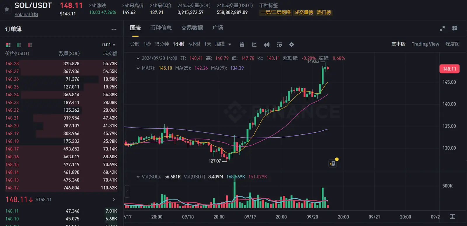 在讨论 Solana 链时,代币价格无疑是一个重要的焦点。根据 Binance 数据,目前 SOL 的报价为 148 美元,过去两天的涨幅达到 16%。今年 3 月, SOL 经历了一轮显著的 meme 热潮,与 EVM 链相比, Solana 在 meme 代币的合约设置上较为宽松,缺乏复杂的限制措施,如税收和白名单、黑名单的设定,这为市场提供了更加公平的竞争环境。