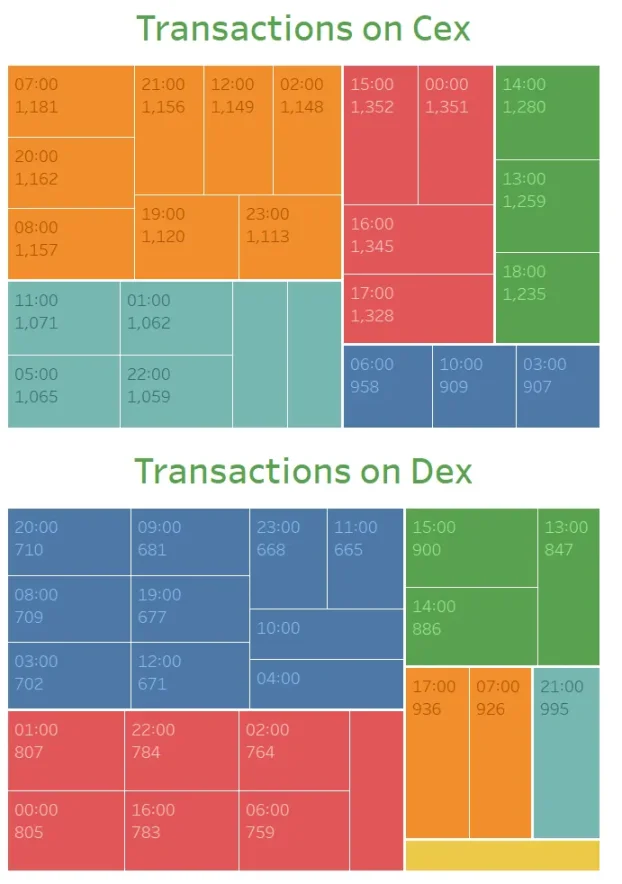 从 DEX 和 CEX 的转账可以明显的看出,资金更加活跃在交易所,并且是美国时区的资金。