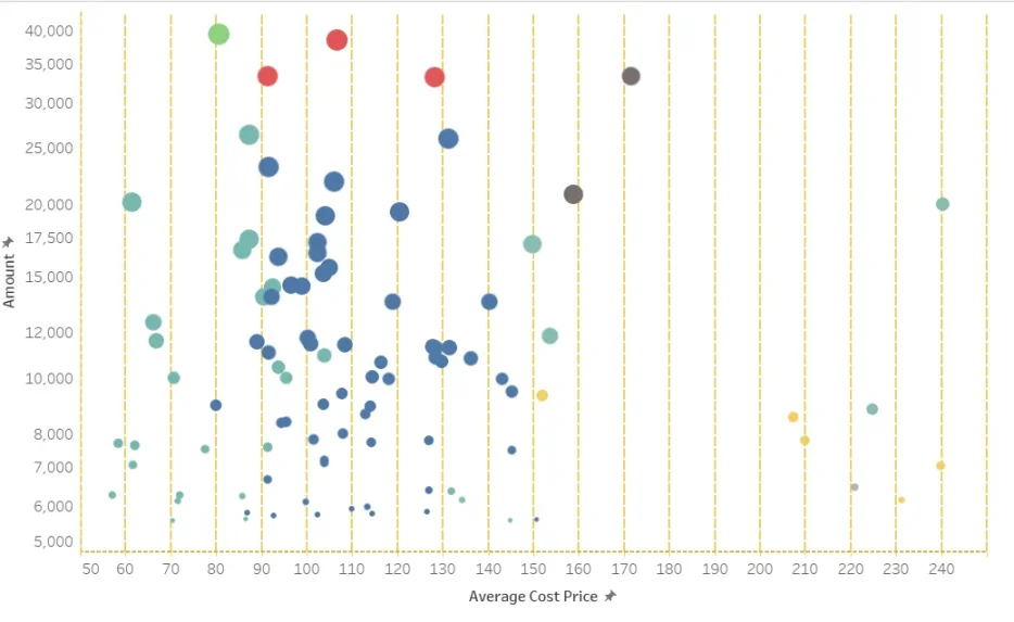 进一步研究持仓大户的成本。上图是持币大户的成本,以及持有量的关系图。从上图中我们可以直观的看到