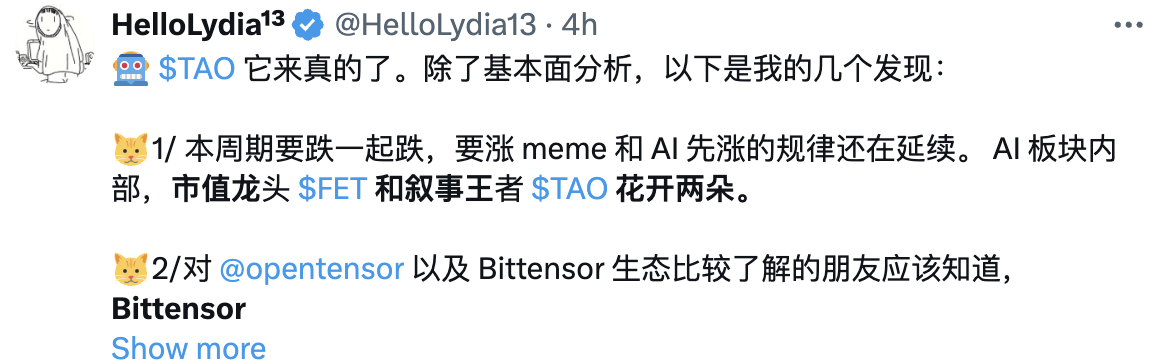 Bittensor 生态代币普涨,TBANK 单日涨幅超 76%