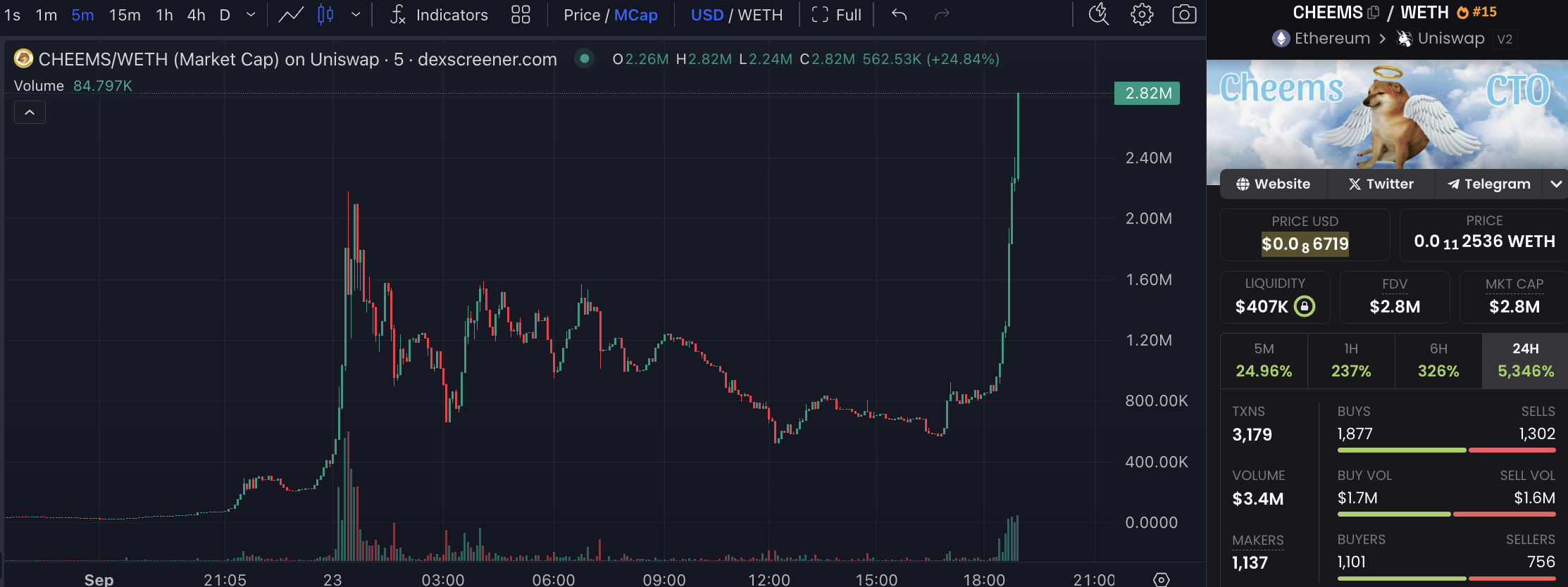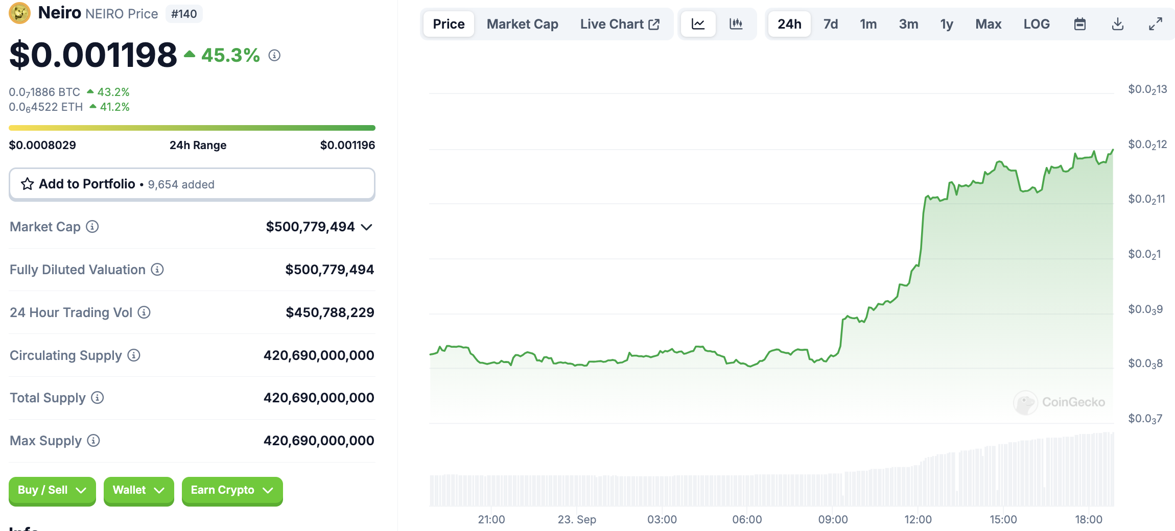 9 月 23 日 meme 资金流动情况,按交易量及涨幅筛选并排列