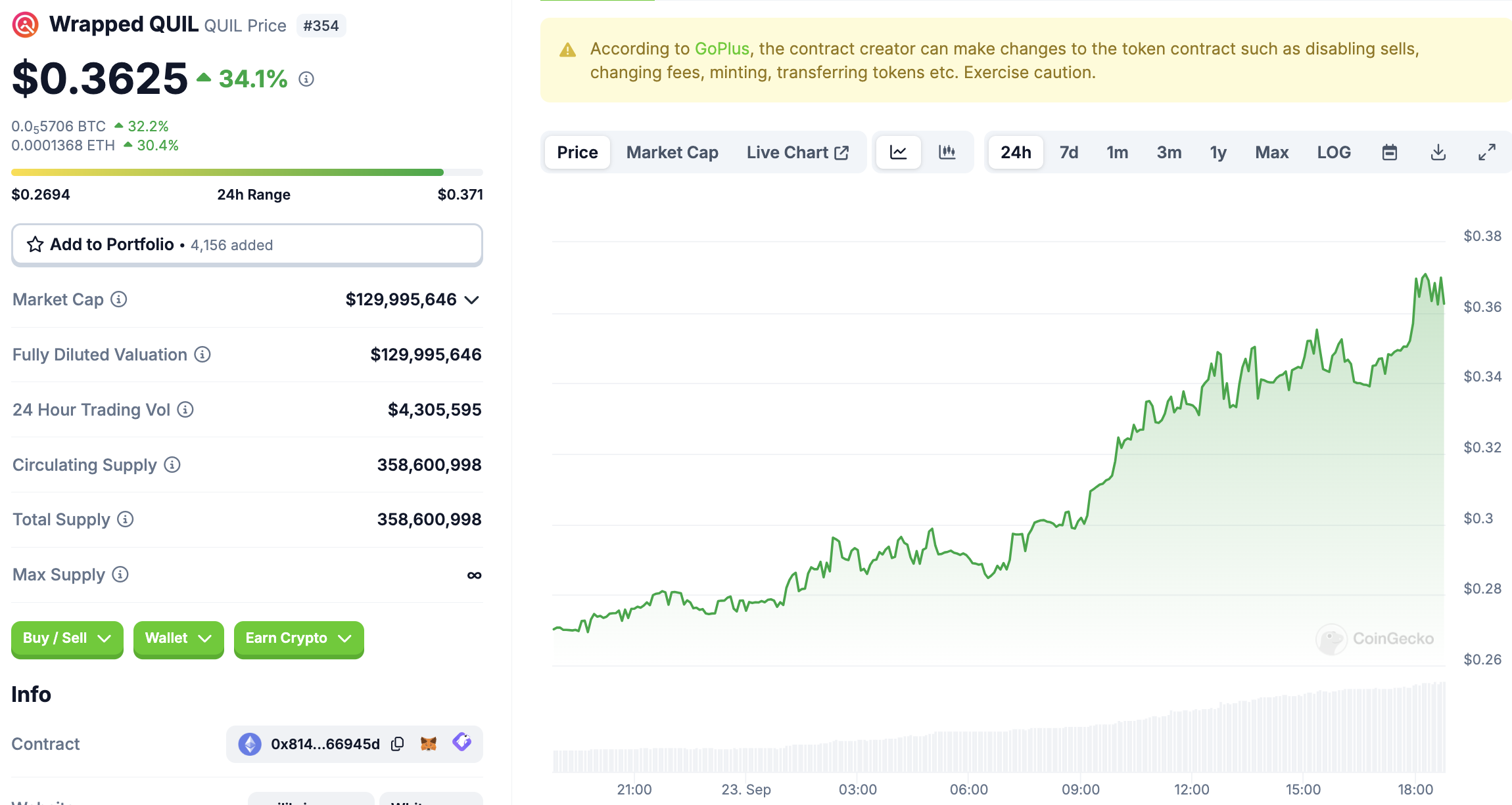 9 月 23 日代币波动情况,按交易量筛选并排列