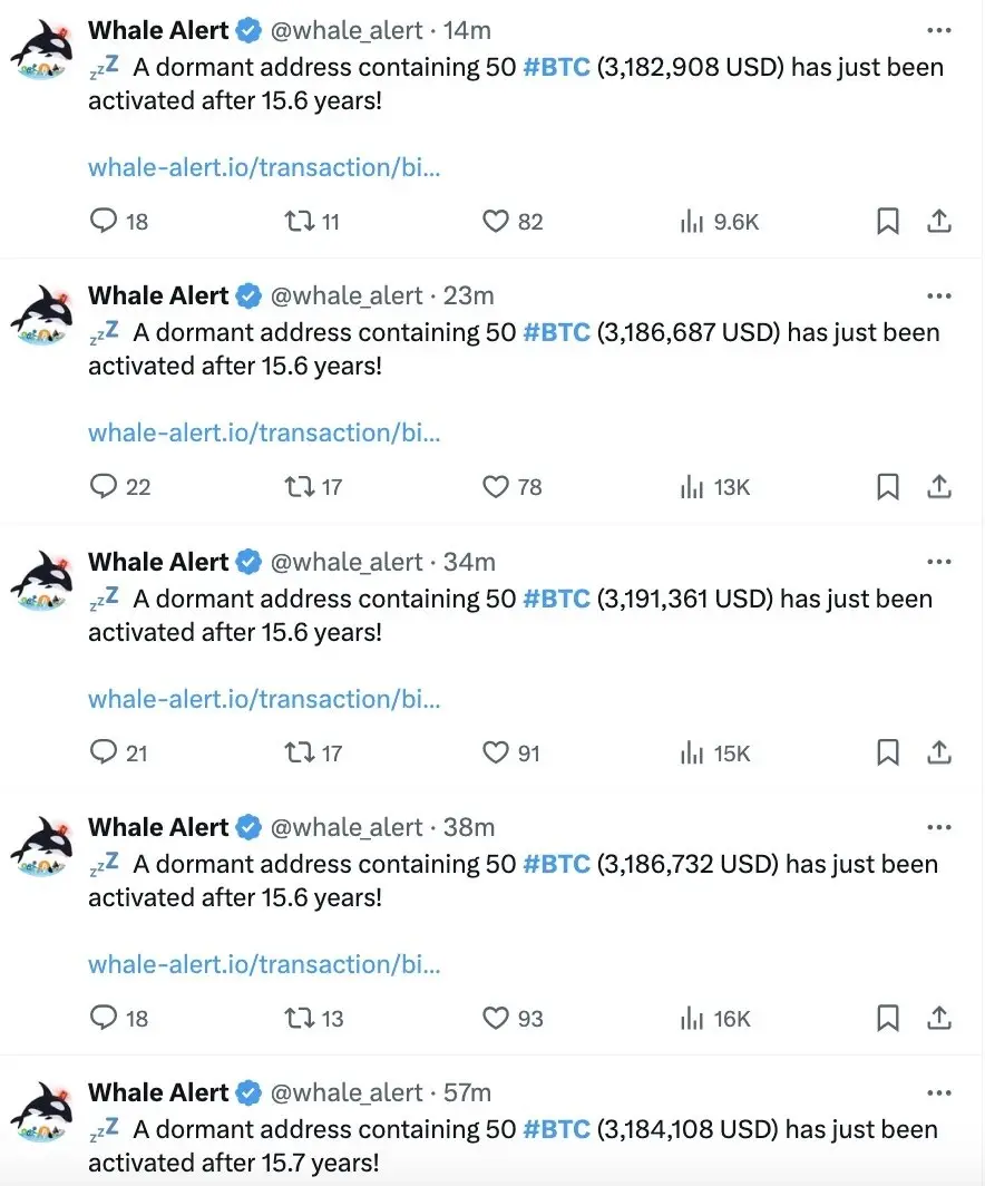 不光是以太坊远古巨鲸接连苏醒,甚至早在加密货币「蛮荒时期」的比特币创世挖矿巨鲸们近期也从沉睡中醒来。