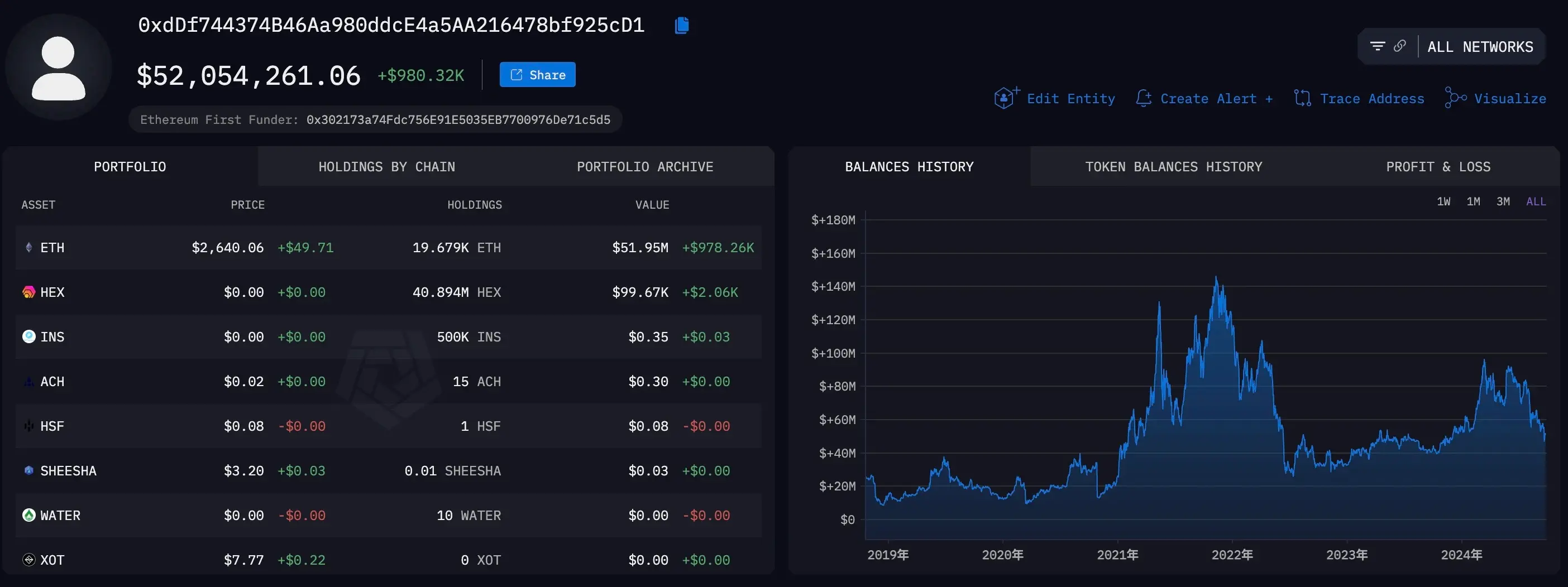 主要追踪地址:https://platform.arkhamintelligence.com/explorer/address/0xdDf744374B46Aa980ddcE4a5AA216478bf925cD1(余额 5205.4 万美元,包含 19679 枚 ETH 及 4089.4 万枚 HEX)。