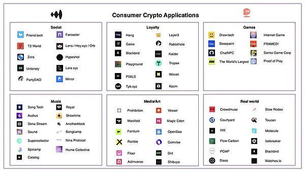 Crypto 领域消费者应用(Consumer Apps)的前景十分广阔。这些应用旨在让区块链触手可及,提供从金融服务到社交互动、游戏等一系列功能。然而,这些应用仍在开发中。许多新兴项目显示出弥补这一差距的潜力,提供直观的界面和实用的功能,可以吸引和留住日常用户。
