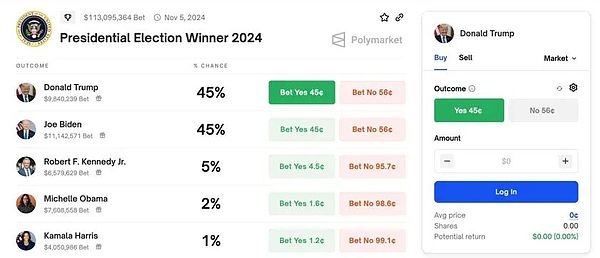 Polymarket 是一个去中心化的预测市场,用户可以押注各种类别的现实世界事件的结果,例如政治、体育、娱乐等。用户可以通过创建帐户并存入USDC 来参与。该平台提供了一系列市场,用户可以根据自己的预测买卖“结果股份”。这些股份的价格在 0.01 美元到 1.00 美元之间,反映了预测结果的总体概率。如果预测正确,股份将升至每股 1.00 美元;如果预测错误,它们将变得一文不值。