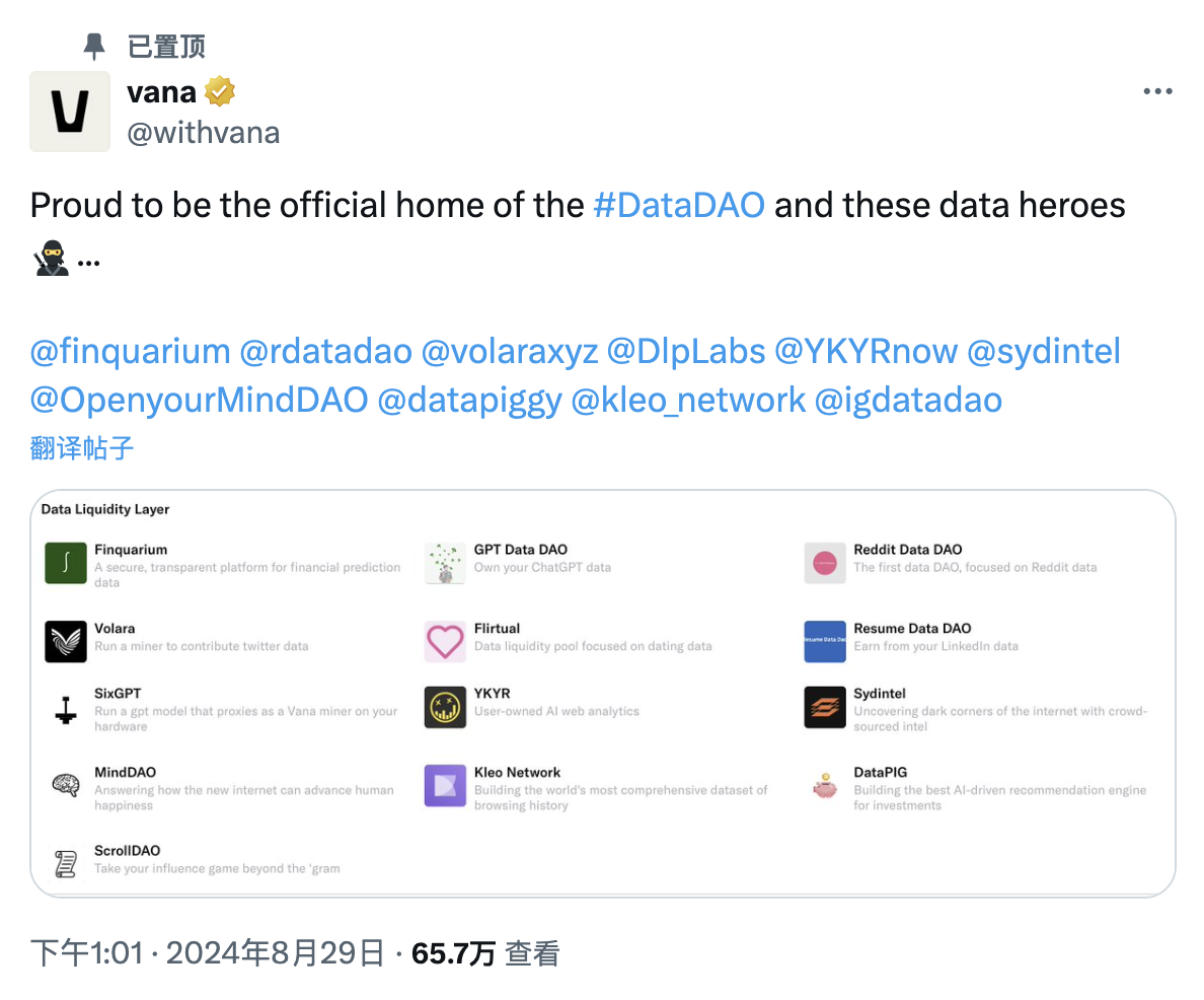 Vana 的技术架构不仅解决了当前数据经济中的核心问题,如数据所有权、隐私保护和价值分配,还为未来的数据驱动创新铺平了道路。随着更多的数据 DAO 加入网络,更多的应用在平台上构建,Vana 有潜力成为下一代去中心化 AI 和数据经济的基础设施。