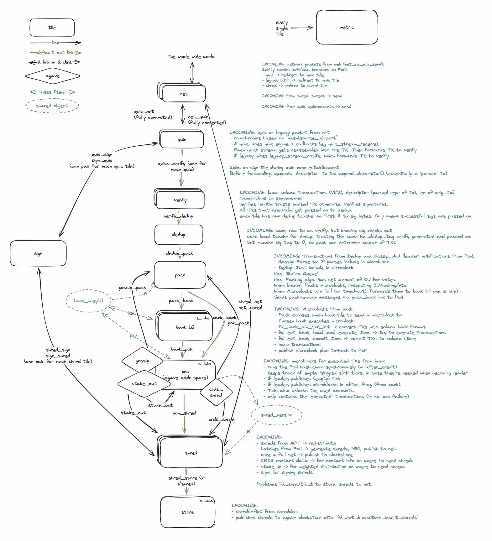 2.quic:接收来自客户端的交易,执行所有连接管理和数据包处理以管理和实施 QUIC 协议(每 tile 可处理 >100 万 TPS);