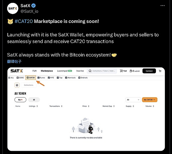 与之一起推出的是 SatX 钱包,使买家和卖家能够无缝发送和接收 CAT20 交易。