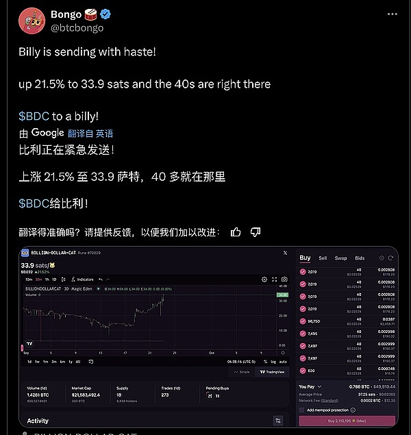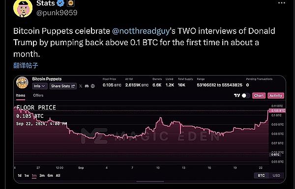 ● Ordinals 普涨,比特币木偶突破 0.11BTC