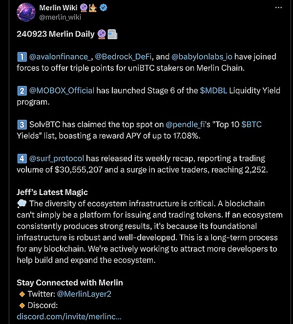 -@avalonfinance_、@Bedrock_DeFi@babylonlabs_io 联手为 Merlin Chain 上的 uniBTC 质押者提供三倍积分。