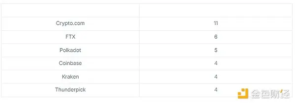 2021 年至 2024 年间获得体育赞助最多的顶级加密货币公司如下: