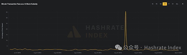 交易手续费占区块奖励的比例(2024年7月30日至2024年9月1日)