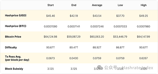 上月,平均交易费用为近2年以来的最低水平,平均每区块每日获得0.0797 个比特币。然而,在Babylon Protocol推出期间,交易费用短暂飙升,区块奖励高达15 个比特币,比特币矿工平均每区块每日获得0.15个比特币,交易费用较之前显著增加。同时,算力价格一度飙升至$49.25美元/PH/日,达到近期高点。然而,Babylon Protocol热潮降温后,矿工平均每区块每日获得0.0506 个比特币,下降了66.60%。尽管交易费用爆炸式增长的时间短暂,但的确增加了矿工的周内盈利能力。交易费用占当月区块奖励的2.43%。如果没有Babylon Protocol对交易费用的提振,该比例将为1.86%。