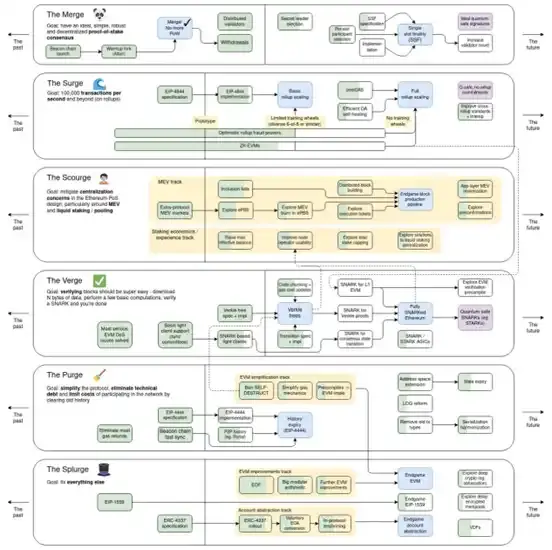 6、路线图制定:Vitalik 更新了路线图图示,然后有几十项工作由不同团队并行开发;