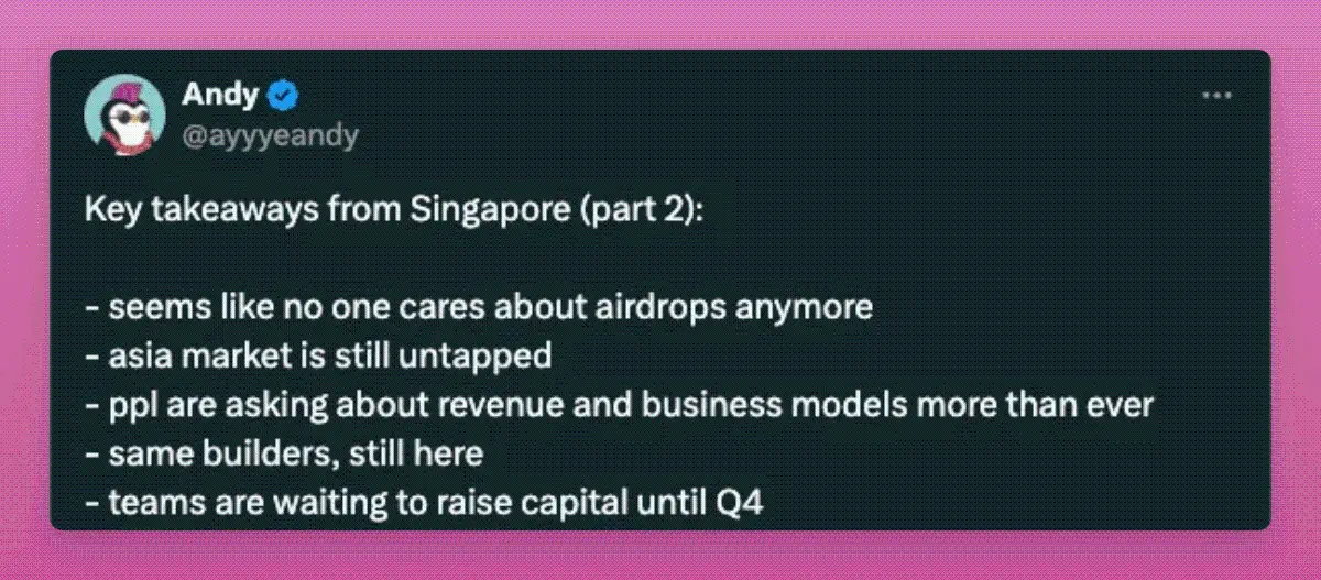 Token2049 新加坡无疑是 2024 年最大的加密货币盛会,而让我们印象深刻的一点来自 Andy 的分享:“亚洲市场仍然未被开发。”