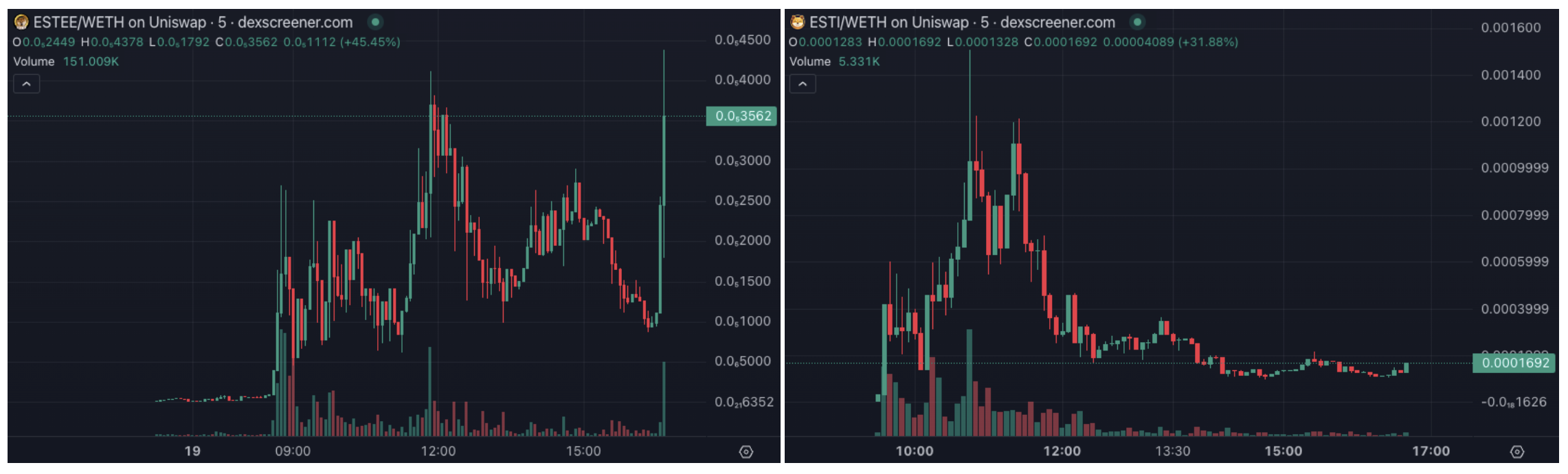与 HANA 拥有类似概念的还有 ESTEE、ESTI,前者市值最高接近 400 万美元,后者市值最高达 150 万美元。