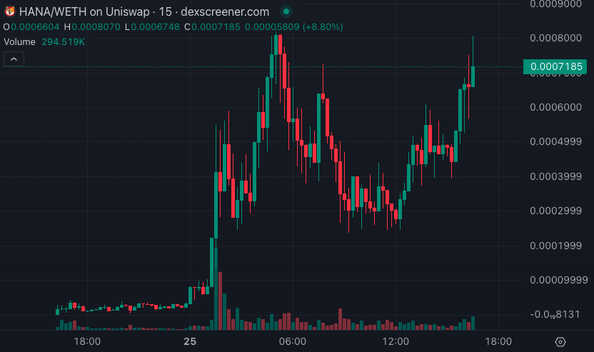 HANA 是网传 SHIBA Inu 原型宠物的名字,$SHIB 作为经典狗狗 meme,市值如今已突破 80 亿美元,而 HANA 作为 SHIB 的「原型狗」,被不少 KOL 称为「SHIB 的继承者」。@Mirro7777 在 X 上表示$HANA 代币出自「阴谋集团」,且吸取了此前 DOGGO 操盘失败的经验,盘内留有一些内幕地址。