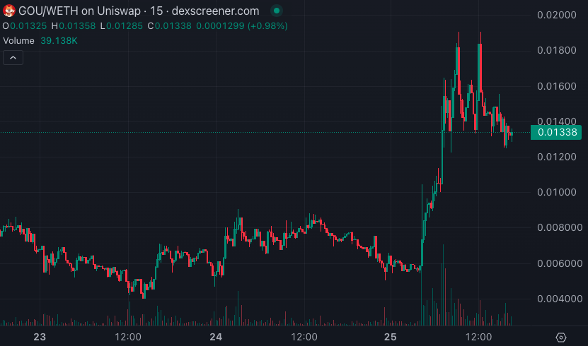 据社区成员表示,$GOU 是由 Neiro 社区鲸鱼与海外 KOL 联合打造的狗狗 meme,代币 Ticker 是汉字「狗」的汉语拼音,与大部分狗狗 meme 显著不同的是,$GOU 的推特账号运营显得更加「专业」和「上档次」,过去几天接连举办了多场推特 Space。