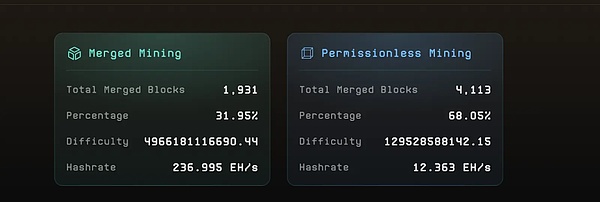 2、 采用了一种独特的混合挖矿方法。每三个区块中,有两个是无需许可挖矿,另一个是与比特币进行联合挖矿。利用比特币的强大算力来增强安全性,同时允许个体矿工在三分之二的区块生产中自由参与,鼓励去中心化。