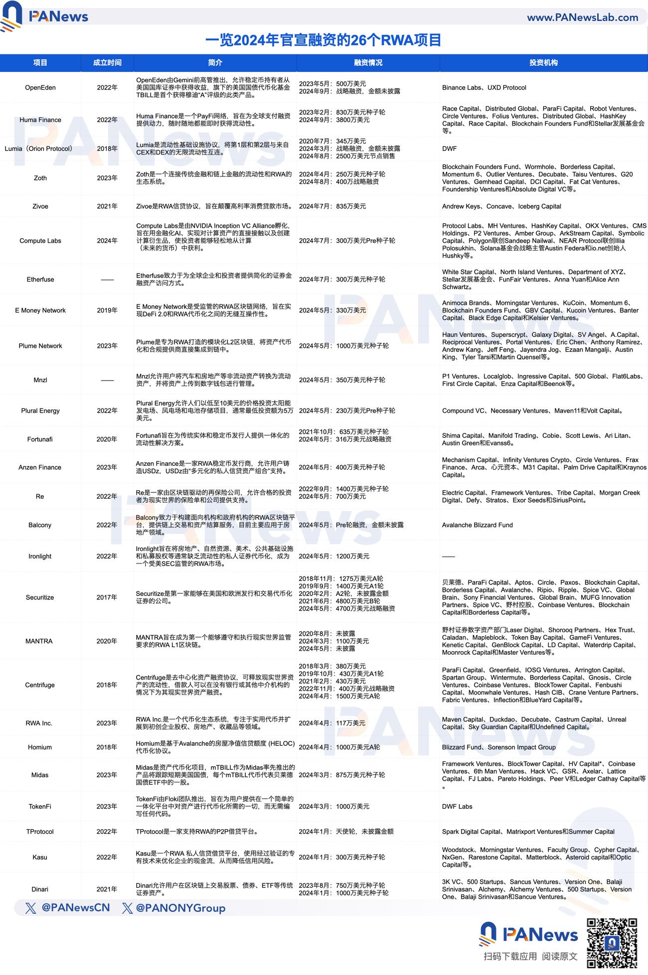 RWA 是今年市场体量增长较快的细分赛道之一,各路机构和资金竞相布局。本文 PANews 盘点了 2024 年官宣融资的 26 个 RWA 项目,累计在今年斩获 2.5 亿美元资金青睐,大多为百万级融资;同时 RWA 的投资热度从今年二季度开始显著升温,且获投项目类型颇为多样。