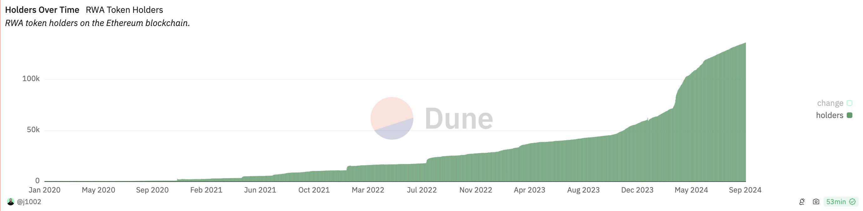以太坊上的 RWA 代币持有者 来源:Dune@j1002