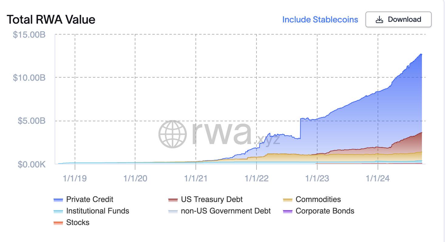 不含稳定币的 RWA 总市值 来源:RWA.xyz
