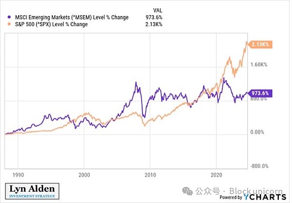 2.) 新兴市场股票不像美国股票那样具有退休账户的结构性买盘,这可能会扭曲其与全球流动性的关系。