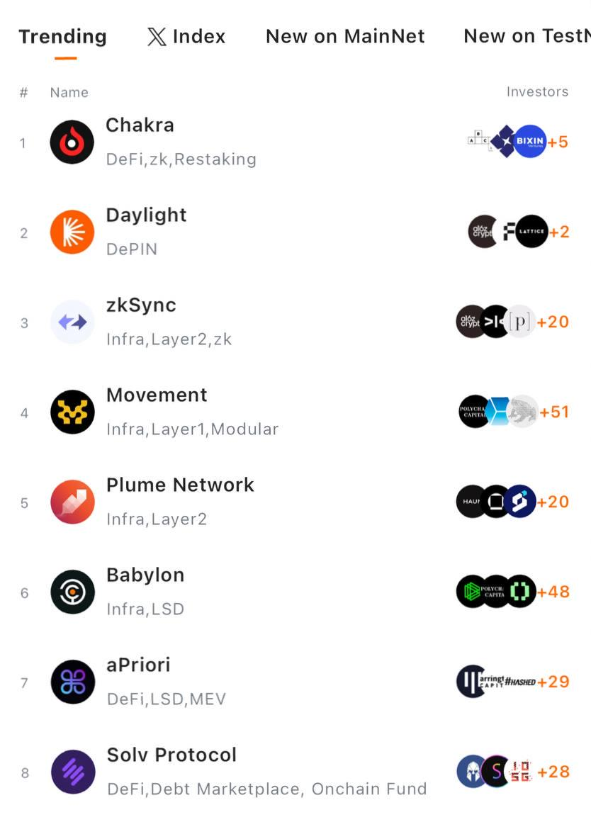• 在协议与生态项目方面,比特币生态正处于爆发期,包括 Layer 2 在内的大量项目不断涌现,VC 融资不断增加,受到了市场关注。例如 merlin、Bouncebit 围绕 BTC 二层网络;BlockFi、Celsius Network 等 lending protocol;Satoshi Protocol、BitSmiley 等 Stablecoin protocol;Babylon、Pstake 等 Staking 协议以及 Chakra、Bedrock 等 Restaking 协议。
