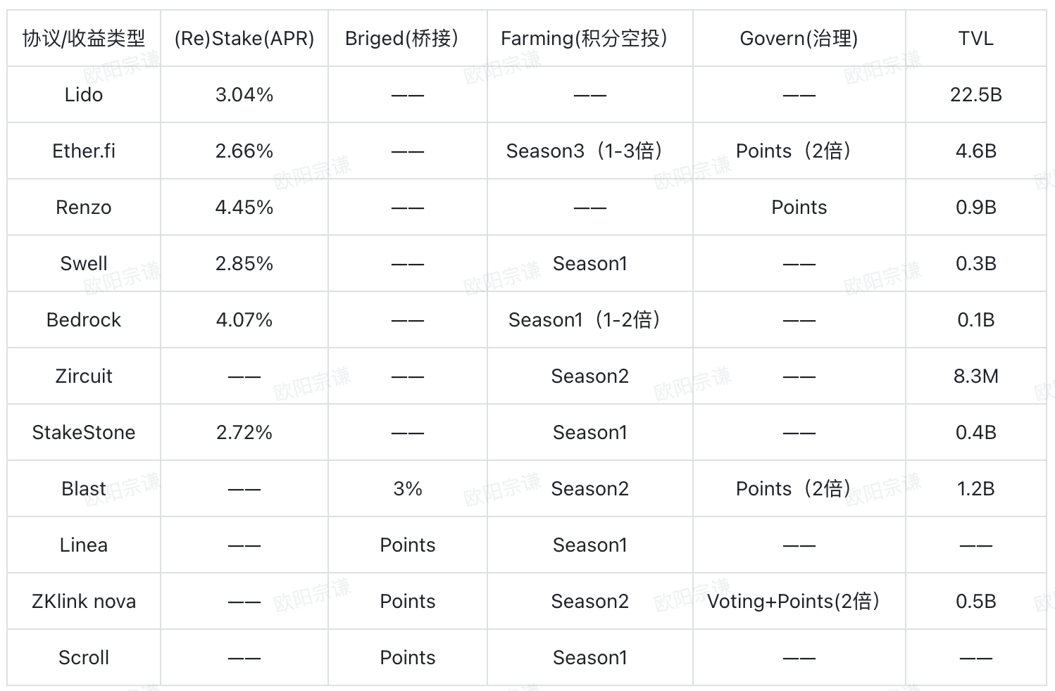 ○ ETHfi 当前各个热门协议的收益率和收益来源: