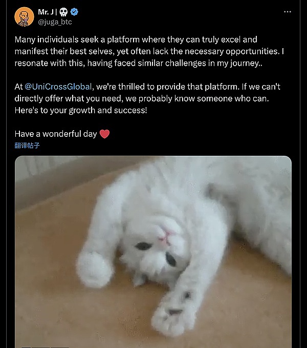 在 @UniCrossGlobal,我们很高兴能提供这个平台。祝我们成长和成功!祝你有美好的一天❤️ by @juga_btc