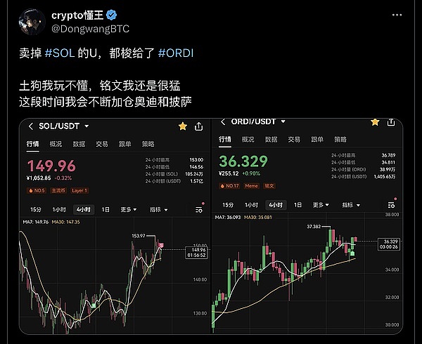 ● $Ordi 突破近 3 个月内新高,达到 37.5 美金一枚