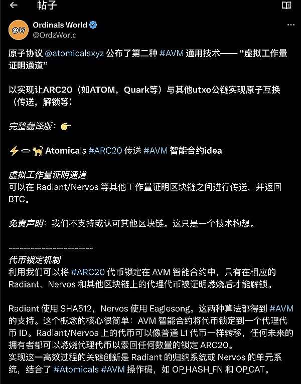 ● Arthur 最近隔三差五来个重磅炸弹,社区也在多方面高强度推进,这些天整个推特上 Atomicals 的声音都多起来了。来自 @100xants 的图文解读