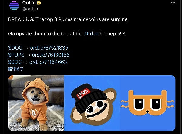 去为他们点赞,让他们登上 Ord.io 主页的顶部!其中 Pups 市值达到 520 万美金市值。