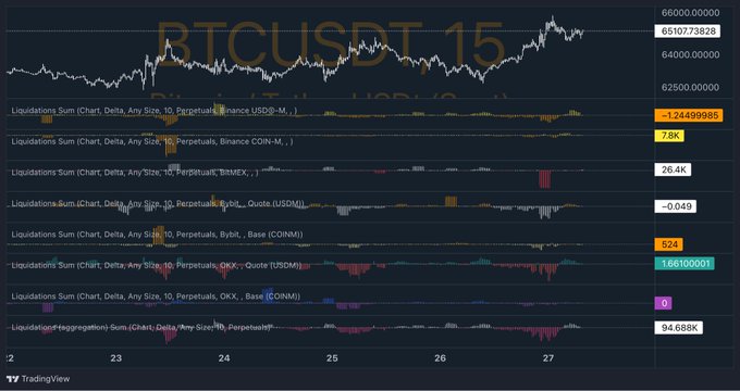 @Xbt886 从订单薄中发现,66-66.7k 有大量卖单,62-63k 有大量买单,整体看涨,可以期待回调,但是也有可能仅为挂单吸引,不会实际成交,不要盲目奔着 62-63k 做空,目前看来获取空头流动性后追高的已经被套,后续还是以保守观察为主。