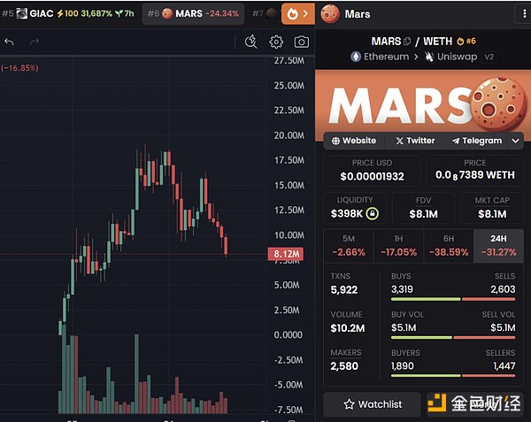 火星概念由 TERMINUS ( 大写 ) 发起,因此其走势为重要指标,若跌破前低 2500 万美元市值,极有可能已走完迷因叙事生命周期。