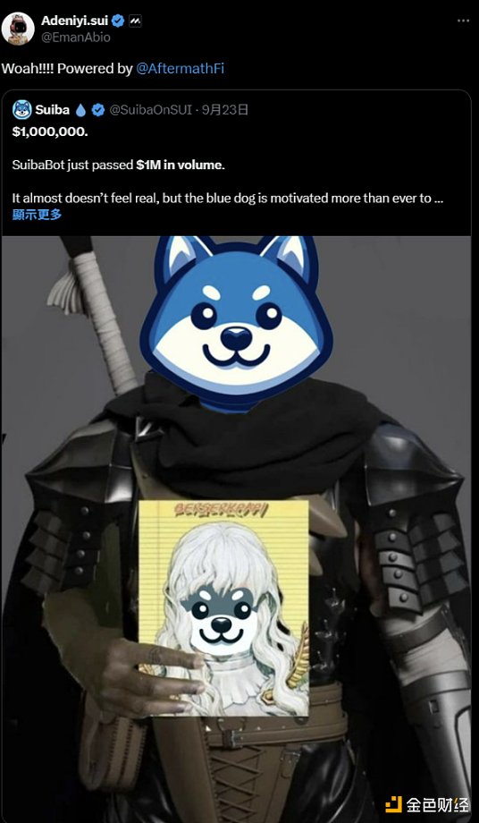 从名字就可以看出来,SUIB 为 SUI 上的柴犬币。但它的特殊之处在于,SUI 的联合创办人 @EmanAbio 于 9 月 24 日 在推特上转发 SUIB 相关贴文,并在当中表示该项目由 SUI 上借贷平台 Aftermath 所打造。在炒作概念上更像是官方认证的迷因币。