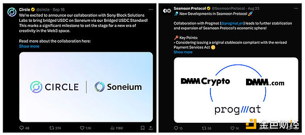 来源:(左图) Circle & Soneium, (右图) DMM Crypto & Progmat