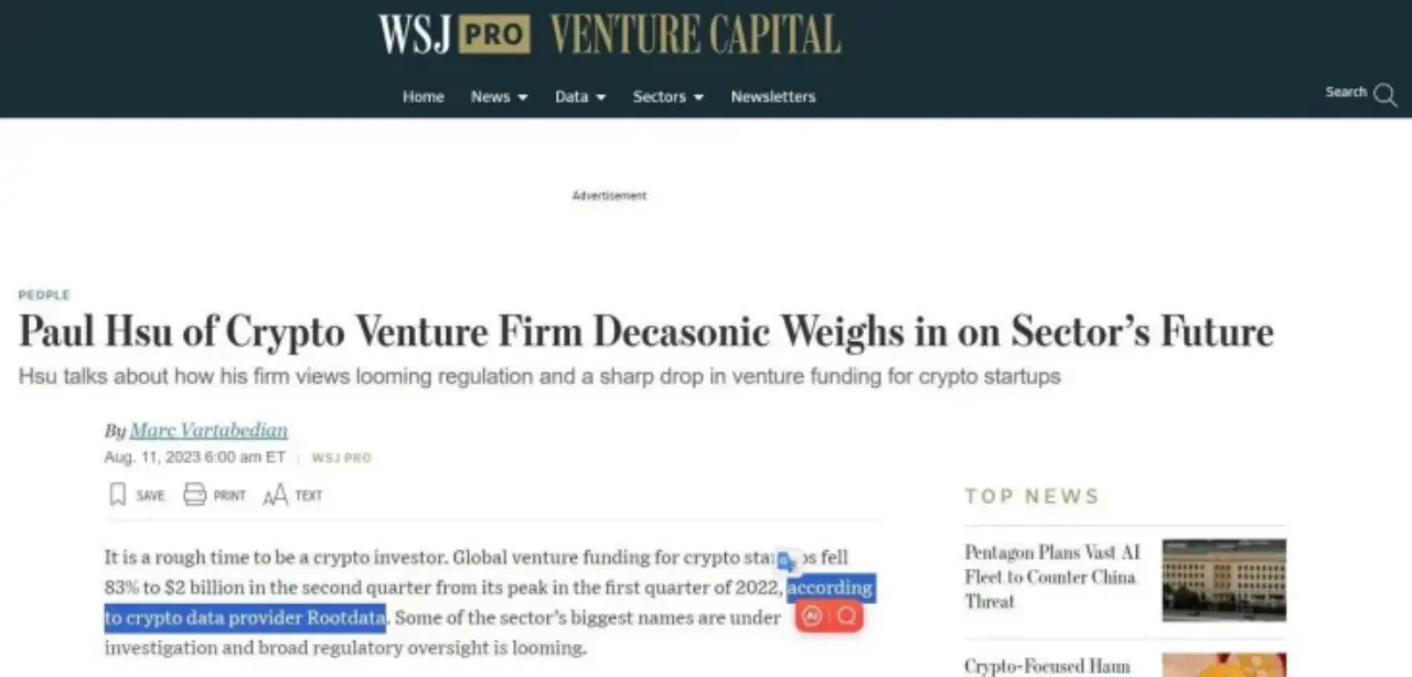 自上线以来,RootData 已累计沉淀了超 200 万独立用户,RootData 数据也被《华尔街日报》、 CoinDesk 、 Cointelegraph 、 Decrypt 等主流的媒体和加密 KOL 多次引用。