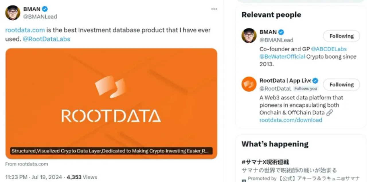 RootData 产品负责人 CC 分享了多个公测用户的使用场景反馈。