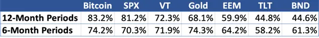 下图进一步说明了与其他资产类别相比,比特币 12 个月滚动期内与全球流动性的方向性一致。