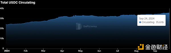 Circle 近三个月的疯狂印钞,增发约 8 亿 USDC,也使得 USDC 的市值在 2024 年呈现缓慢上升趋势,修复矽谷银行所带来的伤痕。