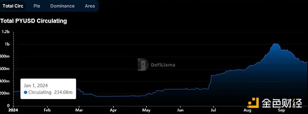 而近期的流通量下跌,则归因于 Solana 上各种 DeFi 协议中对于 PYUSD 奖励年化报酬的下降。