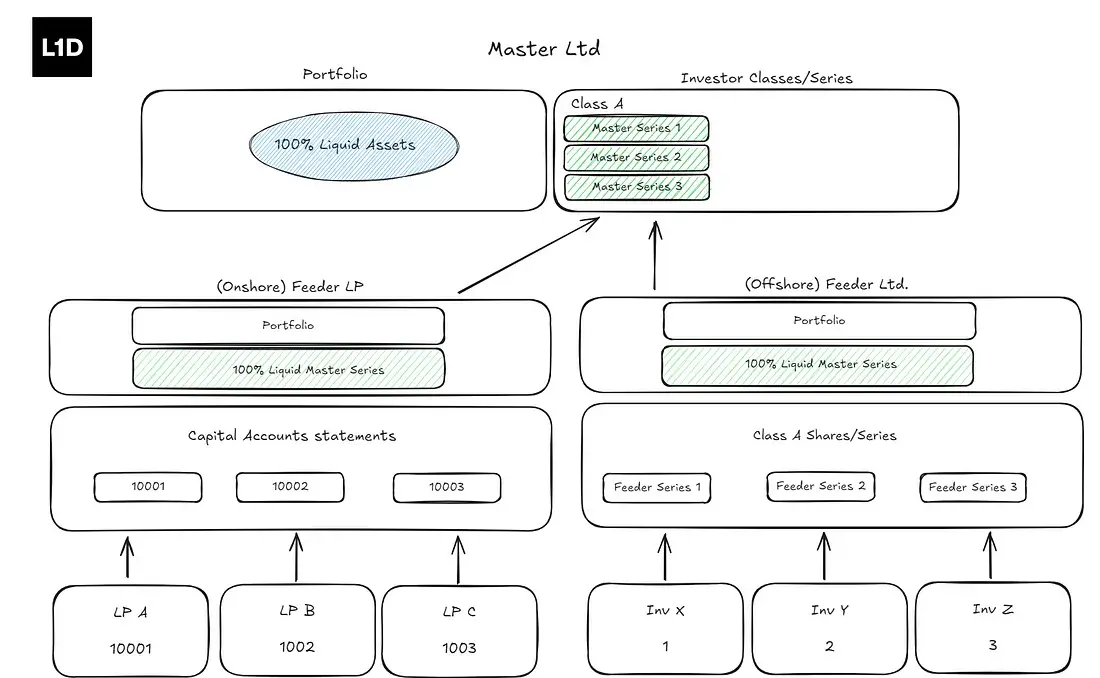 根据上面的结构图,通常有主基金和馈基金实体,主基金持有投资,参与并执行所有投资组合投资活动,并将财务收益分配给底层的馈基金。