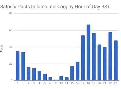 假设 中本聪 过着与比特币无关的生活,那么他在工作或学习期间大部分时间都不在家里的电脑前工作…… 如果中本聪生活在 BST 时区,那么他大部分时间都在晚上工作,经常工作到凌晨
