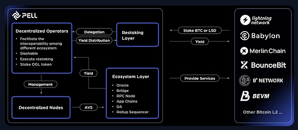 Pell Network 是一个跨链再质押协议,旨在提升比特币生态系统的安全性并优化收益。用户通过质押比特币或流动质押衍生品(LSD)来获得回报,而去中心化的运营商则负责运行验证节点,确保网络的安全性。Pell 提供了一系列主动验证的服务,如预言机、跨链桥和数据可用性,支持更广泛的比特币二层生态系统。凭借其强大的基础设施,Pell 旨在成为提供流动性和保障加密经济安全的重要参与者,推动比特币经济的可持续增长。