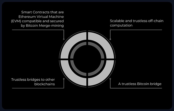 它利用比特币60%的算力,支持双重挖矿,并与以太坊虚拟机(EVM)兼容,这样以太坊的智能合约就可以在比特币上运行。Rootstock独特的Powpeg机制确保了比特币(BTC)与Rootstock比特币(RBTC)之间的无缝转换,而且它的“纵深防御”安全模型强调简单和稳健。