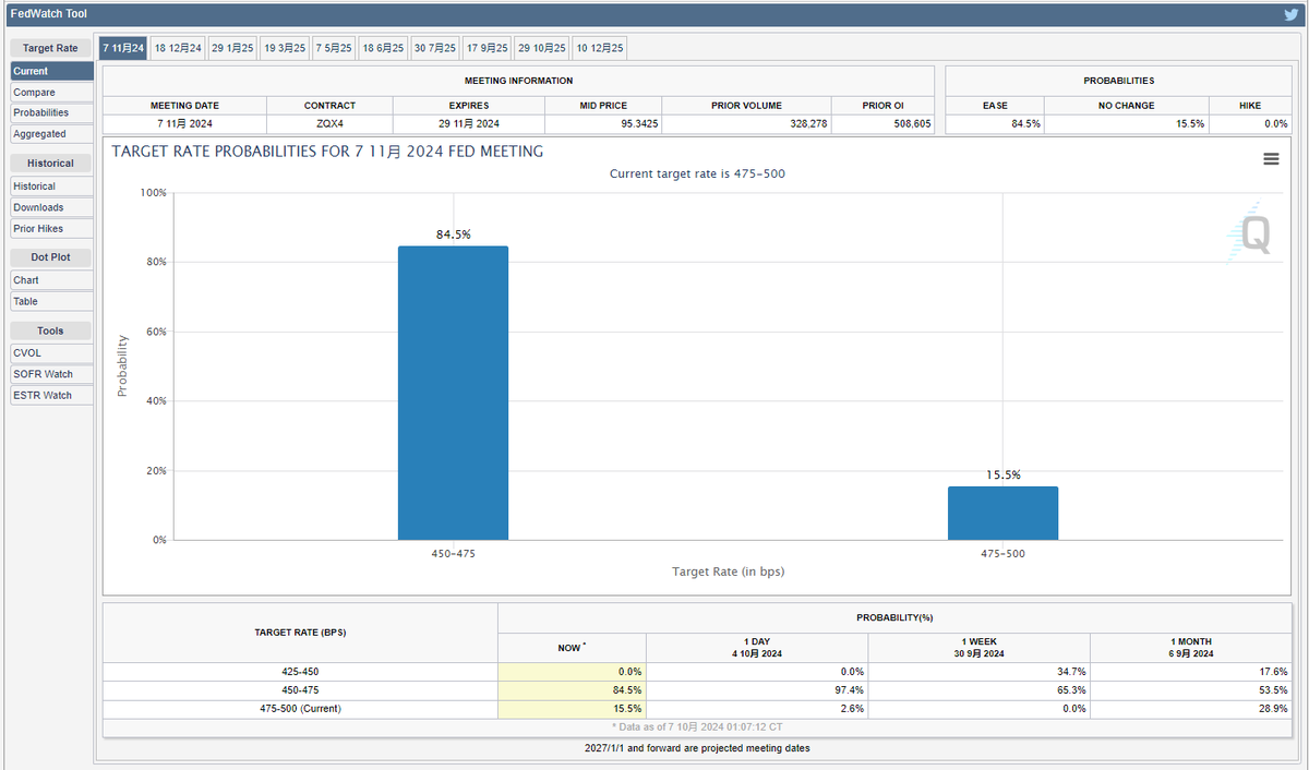 结合最近中美之间的金融操作,能够明显感受到双方对于争抢全球资产流动性方面有些激进了,下一份通胀数据的报告如果出现反弹,就会迫使市场进一步定价 11 月暂停降息的可能。