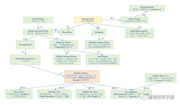 下面这张图,展示了辛顿惊人的家族和朋友圈、学生圈: